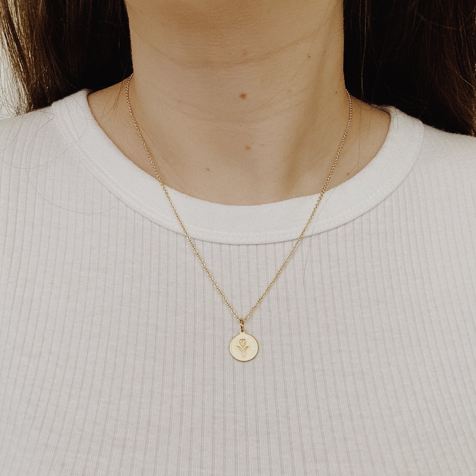 Brass pendant hand stamped with a Tulip